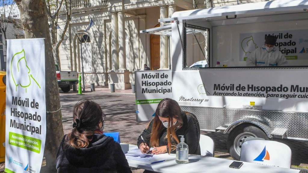 La unidad móvil tiene asignados dos administrativos y dos profesionales de la salud que llevan el control de los hisopos. Se testea a todo aquel que sea vecino de San Fernando y presente síntomas; en 20 minutos se obtiene el resultado.}