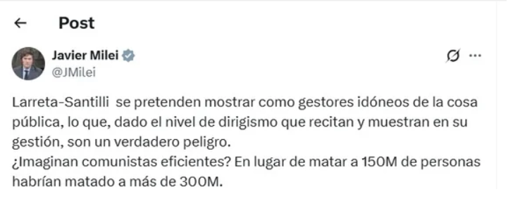 Allá por 2023, el libertario armó un hilo de X contra “la casta”, en donde apuntó contra varios políticos. Uno de ellos fue el por entonces precandidato a gobernador bonaerense por el PRO, al que llamó “el candidato de los TikTok y el boludeo en una provincia gobernada por la inseguridad y los narcos”.
