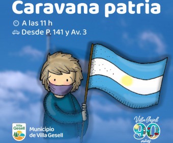 Este 9 de julio, a las 11 horas, la Municipalidad de Villa Gesell invita a todas y todos los vecinos que quieran participar de la “Gran Caravana Patria''. La jornada comenzará desde la zona de la Casa de la Cultura, ubicada en Paseo 141 y Avenida 3, y recorrerá distintos puntos de la ciudad.