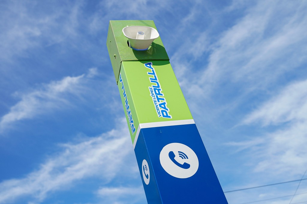 Cada uno de estos elementos cuenta con una cámara domo, que logra visualizar con más claridad la situación en el lugar, y un parlante altavoz, así como también un botón de pánico, que es un pulsador de emergencia que al presionarlo activa la alerta. También permite transmitir mensajes pregrabados y alarmas sonoras.
