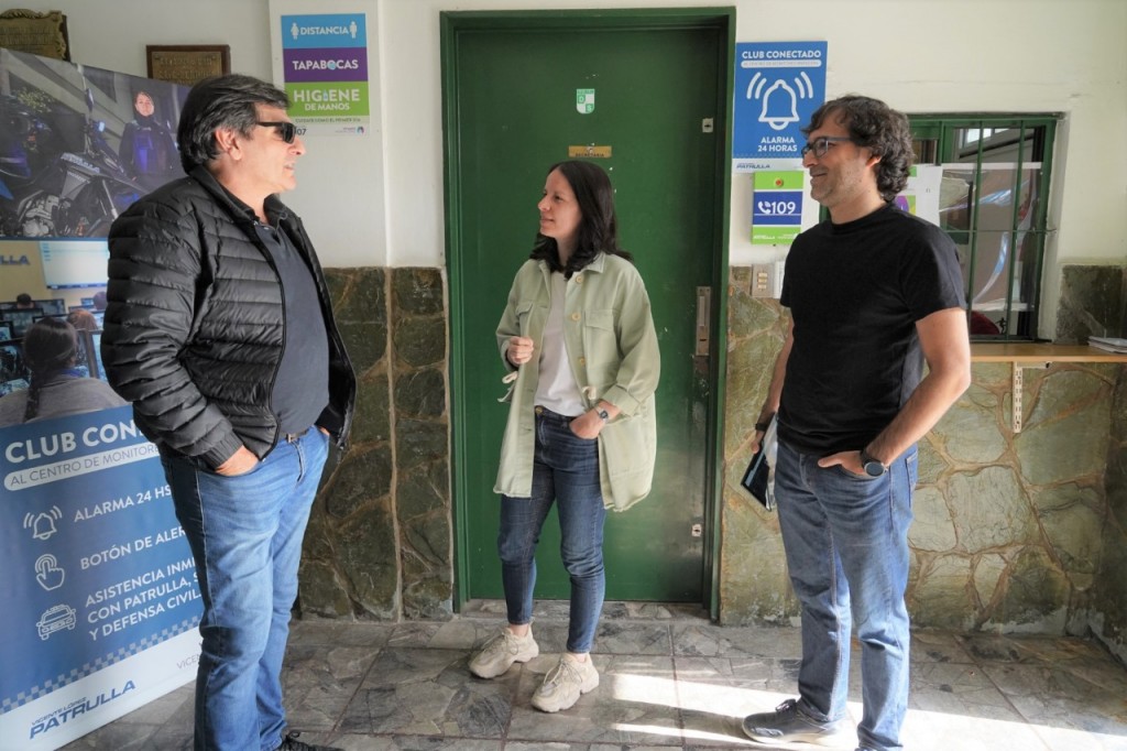 La intendenta de Vicente López, Soledad Martínez, verificó el funcionamiento del botón de alerta instalado en el Club Sarmiento de Olivos, acompañada por el Secretario de Seguridad, Juan José Benitez, y el presidente de la institución, Atilio Córdoba.