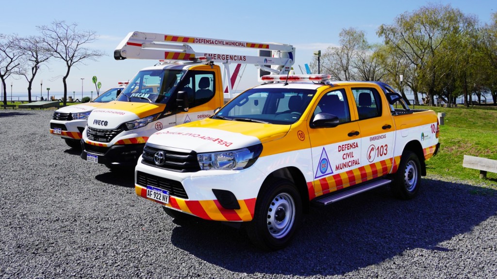 La flota que se suma al equipo de Defensa Civil cuenta con equipadas camionetas, detectores de gas y tensión, y elementos de primeros auxilios. También un camión hidroelevador con mejor tecnología para trabajar en altura. Además, todas las unidades de la flota de Defensa Civil ya cuentan con cámaras, geolocalización y equipo de comunicación.