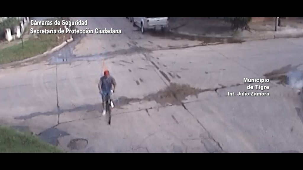Tras una ardua investigación y el análisis de las cámaras de seguridad del Municipio de Tigre, se pudo determinar el recorrido que hizo el sospechoso para huir del lugar del hecho. En las imágenes, que fechan del día sábado, se puede observar al sujeto huyendo a bordo de una bicicleta.