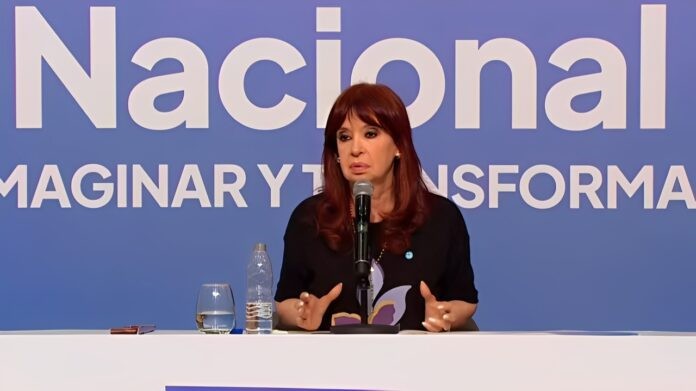 Además, volvió a apuntar contra el Presidente por la sanción que le impuso el Gobierno de Donald Trump, que le prohibió el ingreso a los Estados Unidos: “Muy a pedido, no se la banca solo”, aseveró la exmandataria en la apertura del Congreso Educativo Nacional que se realiza en la Facultad de Ciencias Sociales de la Universidad de Buenos Aires (UBA).